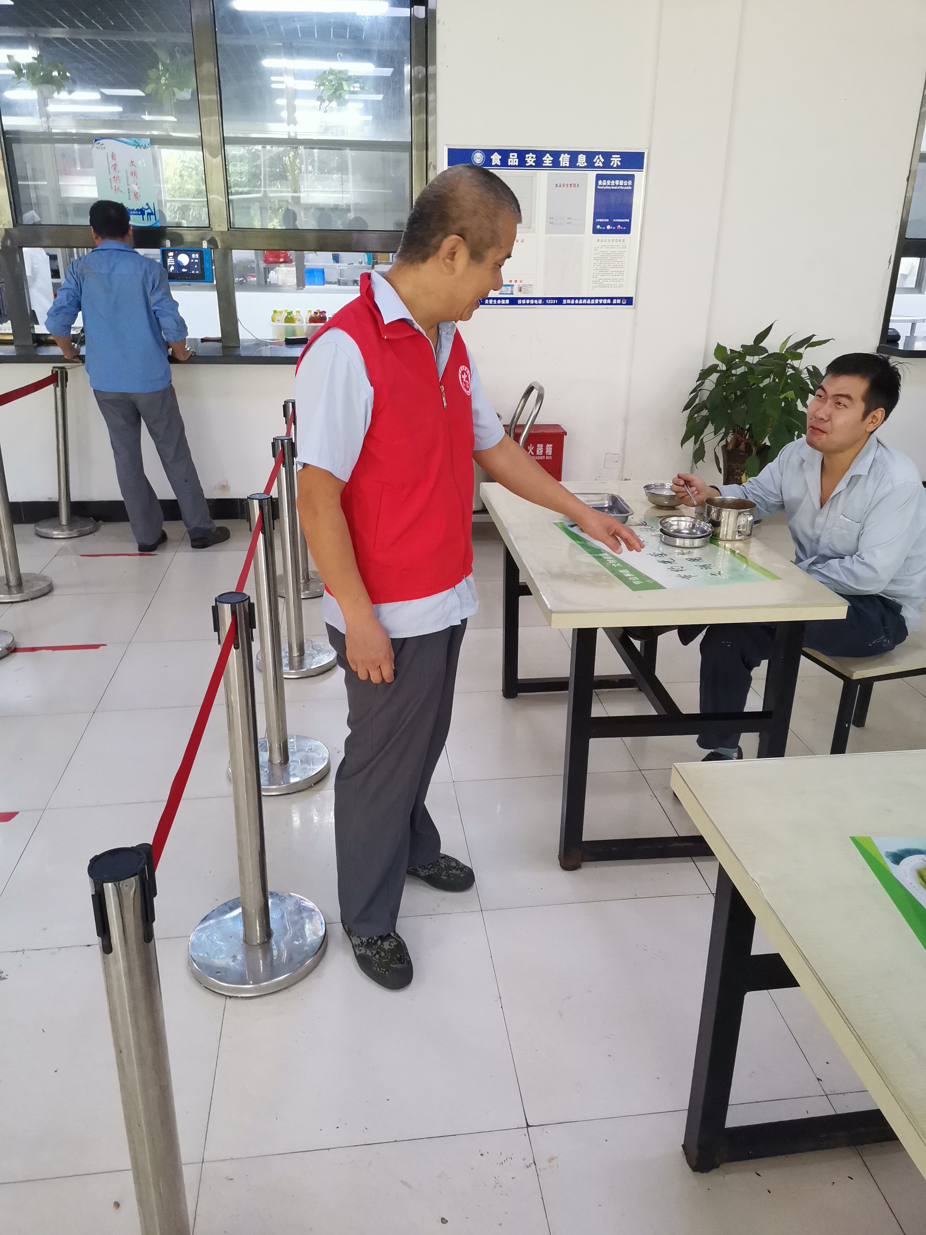 為了創(chuàng)造良好的就餐環(huán)境,在疫情防控不能放松的前提下,各黨支部抽調(diào)人員組成了 “文明餐桌志愿服務(wù)隊(duì)”,在中午就餐高峰期間對(duì)就餐不文明行為進(jìn)行監(jiān)督,主要是針對(duì)餐廳浪費(fèi)現(xiàn)象,職工面對(duì)面兩人或多人就餐情形;職工取餐不自覺排隊(duì)等情形進(jìn)行監(jiān)督并糾正。